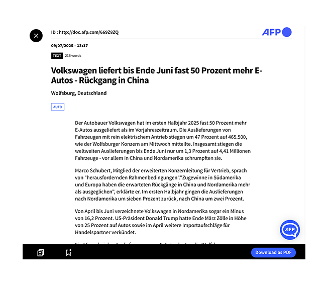 • Exklusive Inhalte : Verbessern Sie das Kundenerlebnis, indem Sie die exklusiven Inhalte von AFP in Ihre Markenumgebung integrieren.