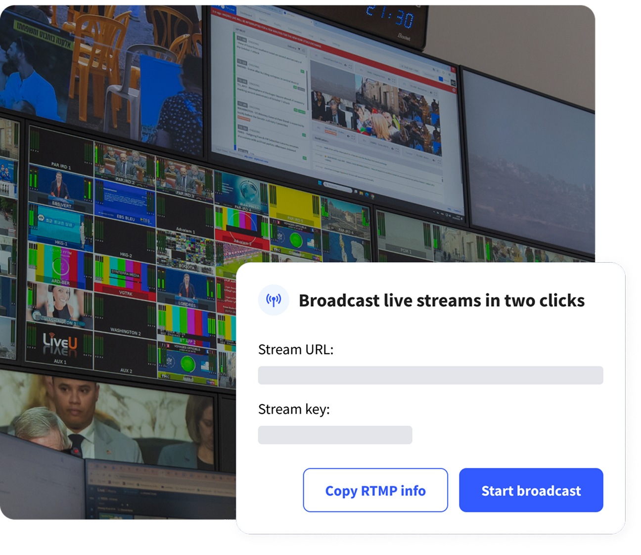 - Integrate our feeds into your control room in just two clicks or stream them directly across your digital platforms and social media.