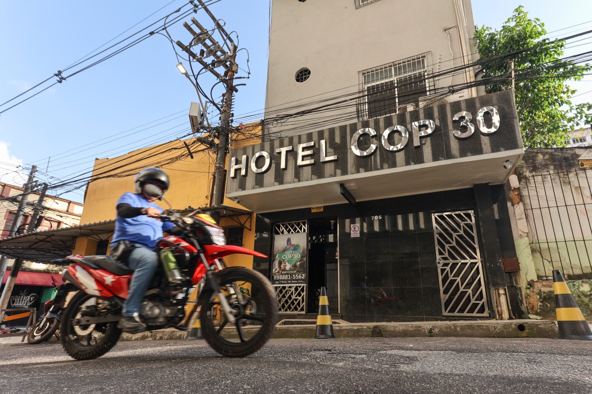 (1) Nouvel hôtel rebaptisé COP30, au centre-ville de Belém, État du Pará, Brésil, le 25 août 2025. © Anderson Coelho / AFP