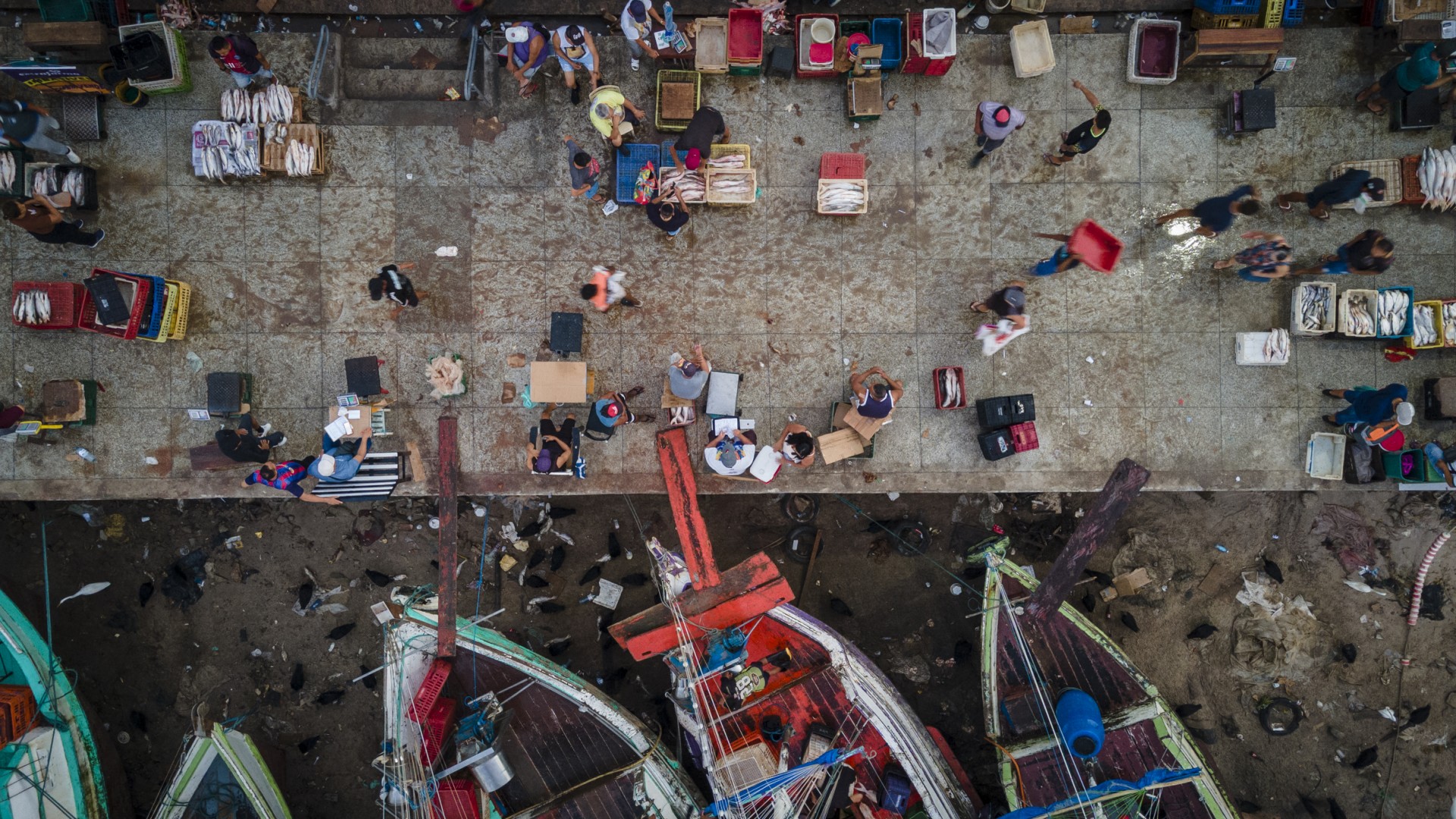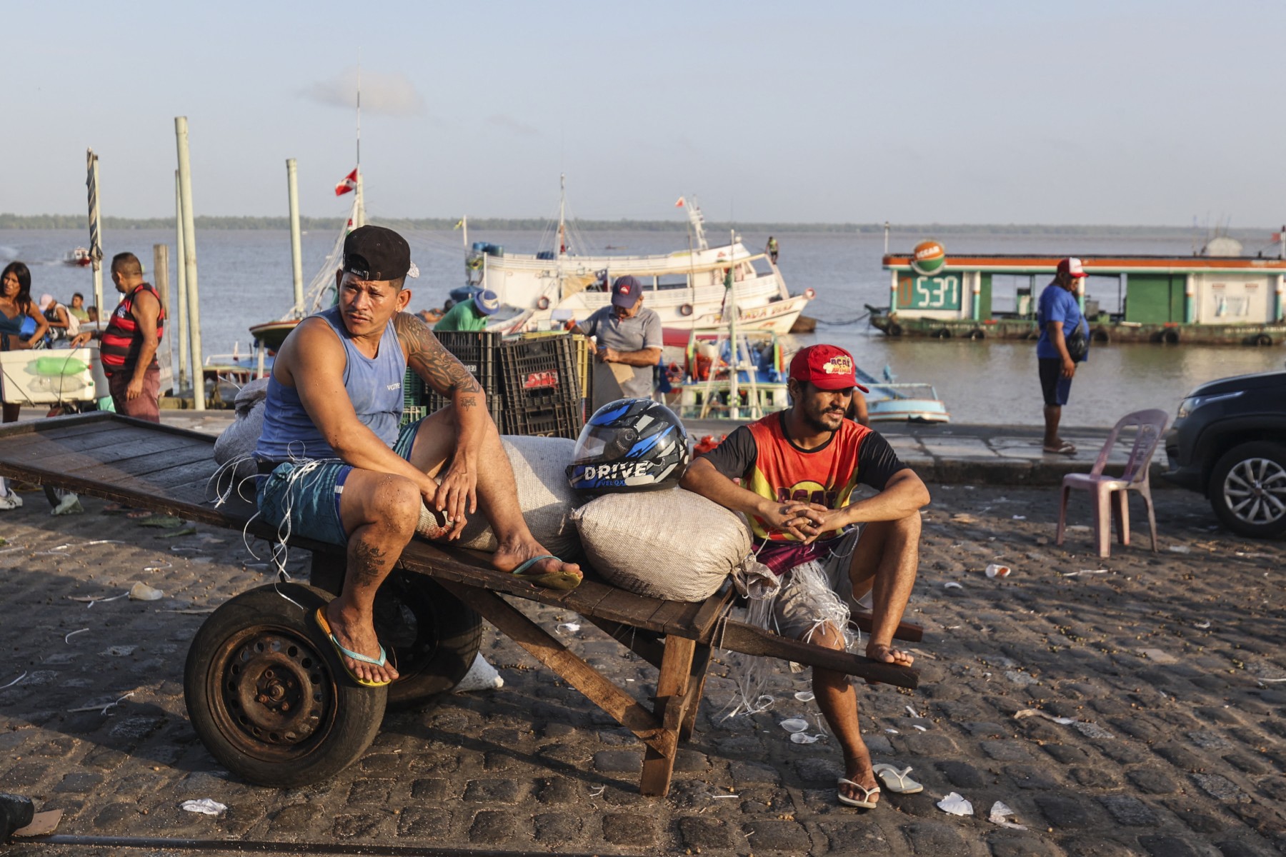 (1) Hommes déchargeant des baies d’açaí.