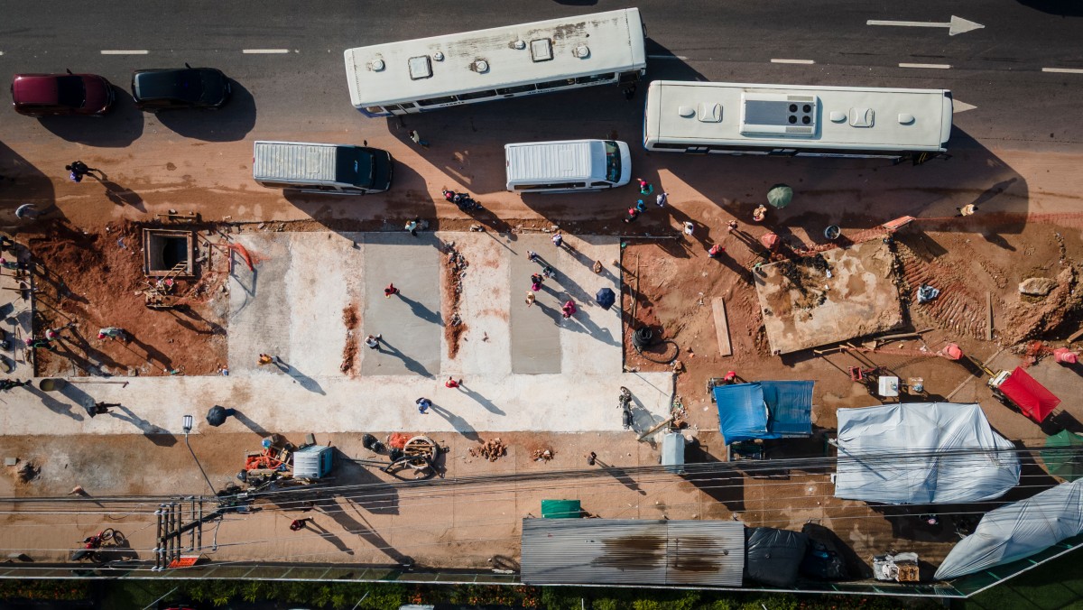 (2) Vue aérienne du chantier du projet de BRT (Bus Rapid Transport) sur la route BR-316, entre les villes d’Ananindeua et Belém, État du Pará, Brésil, le 26 août 2025. © Anderson Coelho / AFP